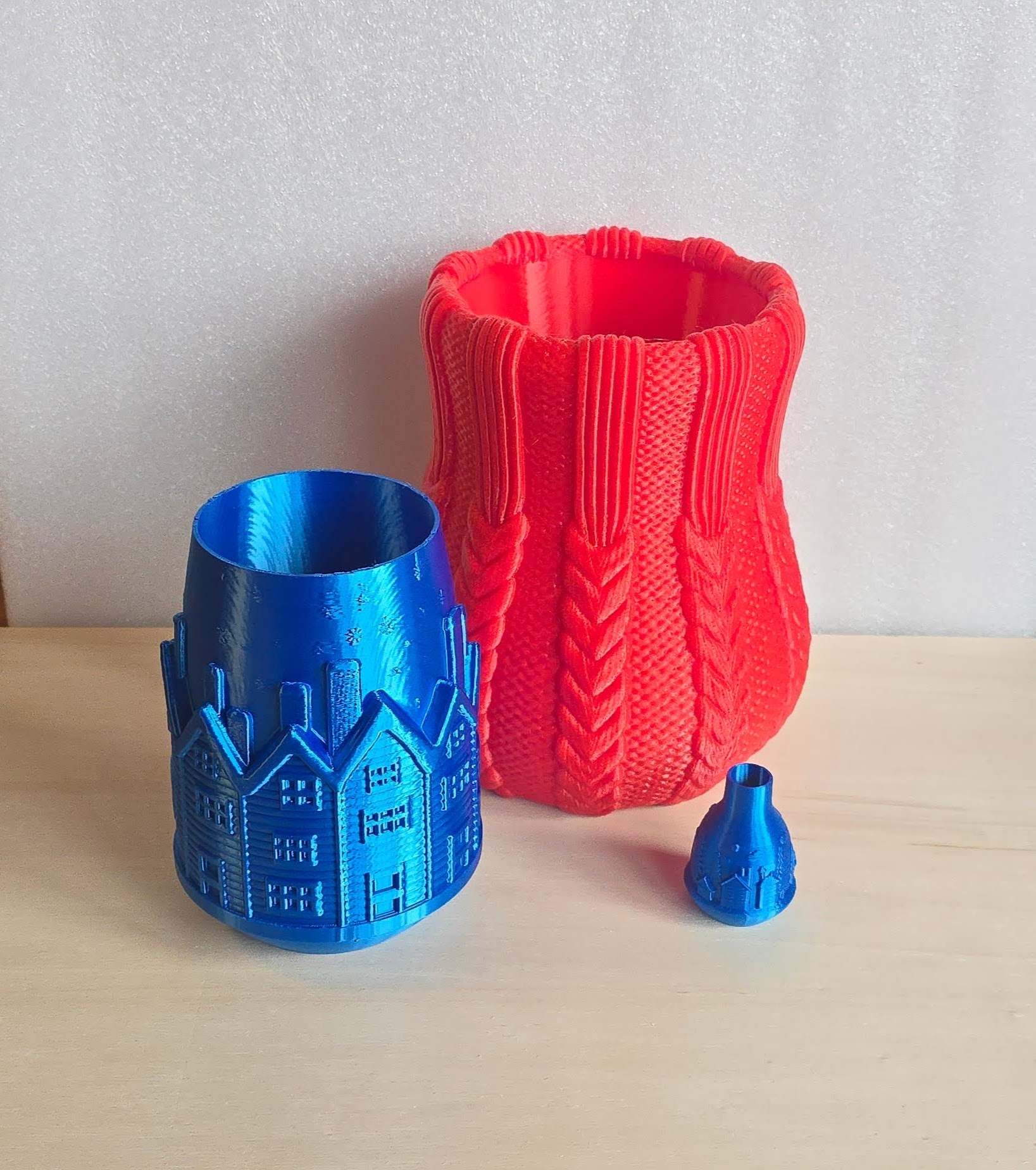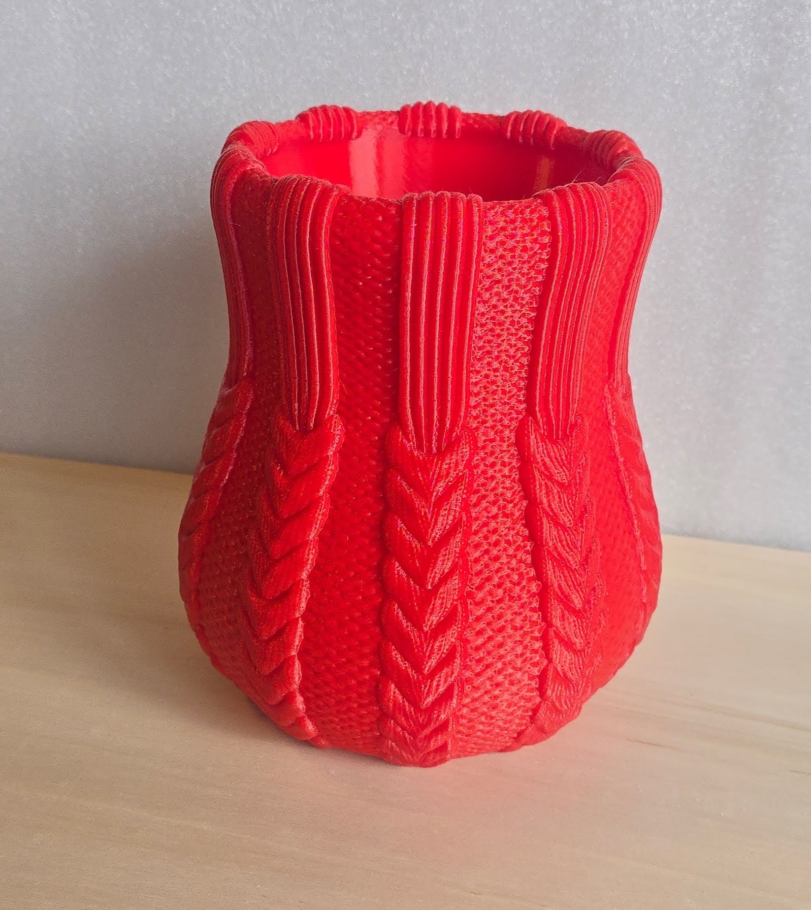 - Beispiel 1: Die rote Vase im gemütlichen "Strick-Look" – Druckzeit: nur 7 Stunden.