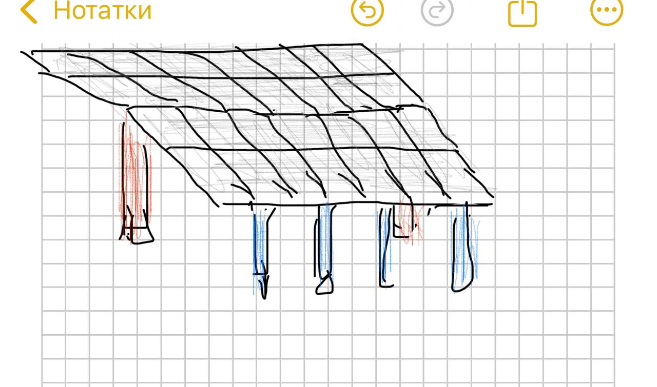 Так народилася ідея перетворити сонячну станцію на щось більше. Ми запропонували новий ескізний варіант, де сонячна станція інтегрувалася б біля будинку та виконувала функцію альтанки. Спочатку це був простий ескіз намальований від руки, який згодом перетворився на 3D-візуалізацію.