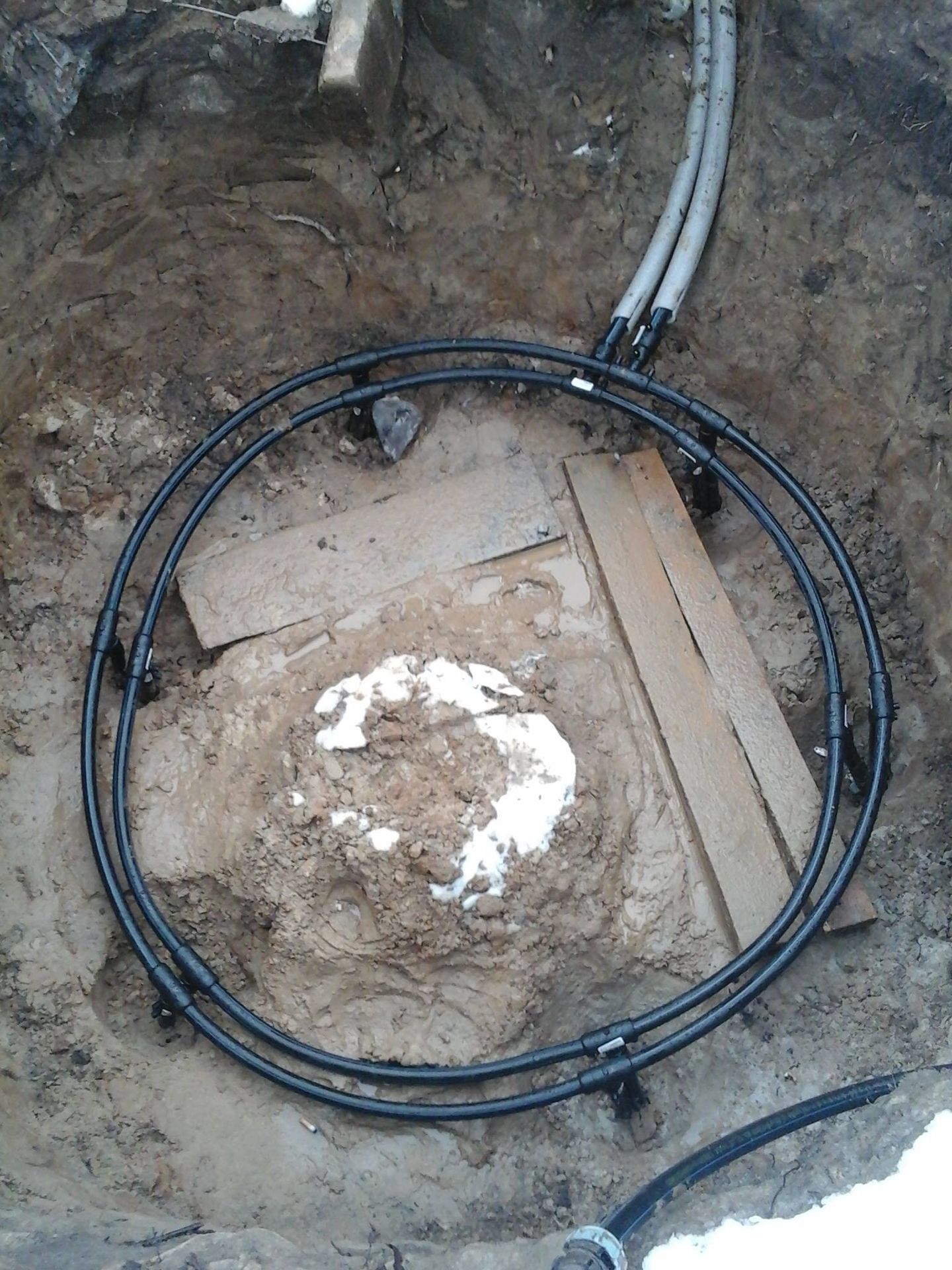 Для монтажу геополя ми використовували 6 свердловин, кожна з яких мала довжину 40 метрів. Незважаючи на складні погодні умови, наші фахівці змогли провести всі зварювальні роботи та прокласти магістраль до будинку. Після цього система була заповнена пропіленгліколем та опресована для перевірки герметичності.