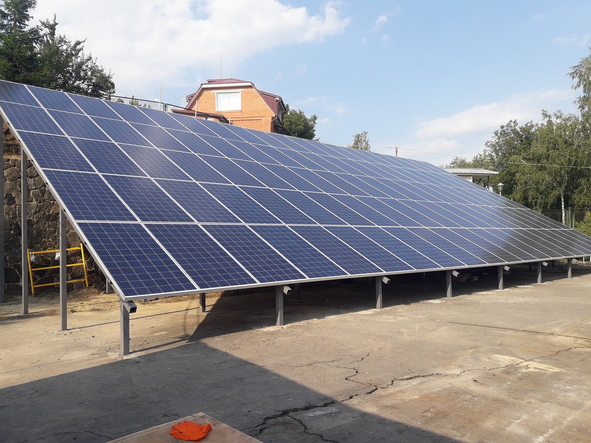 Дана сонячна станція змонтована на наземній конструкції. Вона складається з: