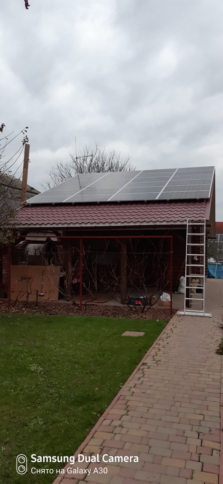 Ще одна сонячна станція змонтована і введена в експлуатацію в Київській області. Сонячні панелі розмістили на даху і металоконструкції. Завдяки підключенню до мережі Київобленерго, нам вдалося виконати повний комплекс робіт і зробити підключення за "зеленим тарифом". Сонячна станція змонтована на дахах і металевих конструкціях з використанням сонячних батарей Jinko Solar і мережевого інвертора Алтек 30 кВт.