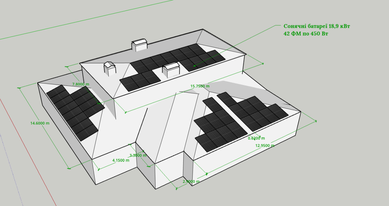 Роботи з монтажу розпочалися зі створення 3D-моделі для точного проєктування розміщення панелей. Це забезпечило оптимальне використання площі фальцевого даху.