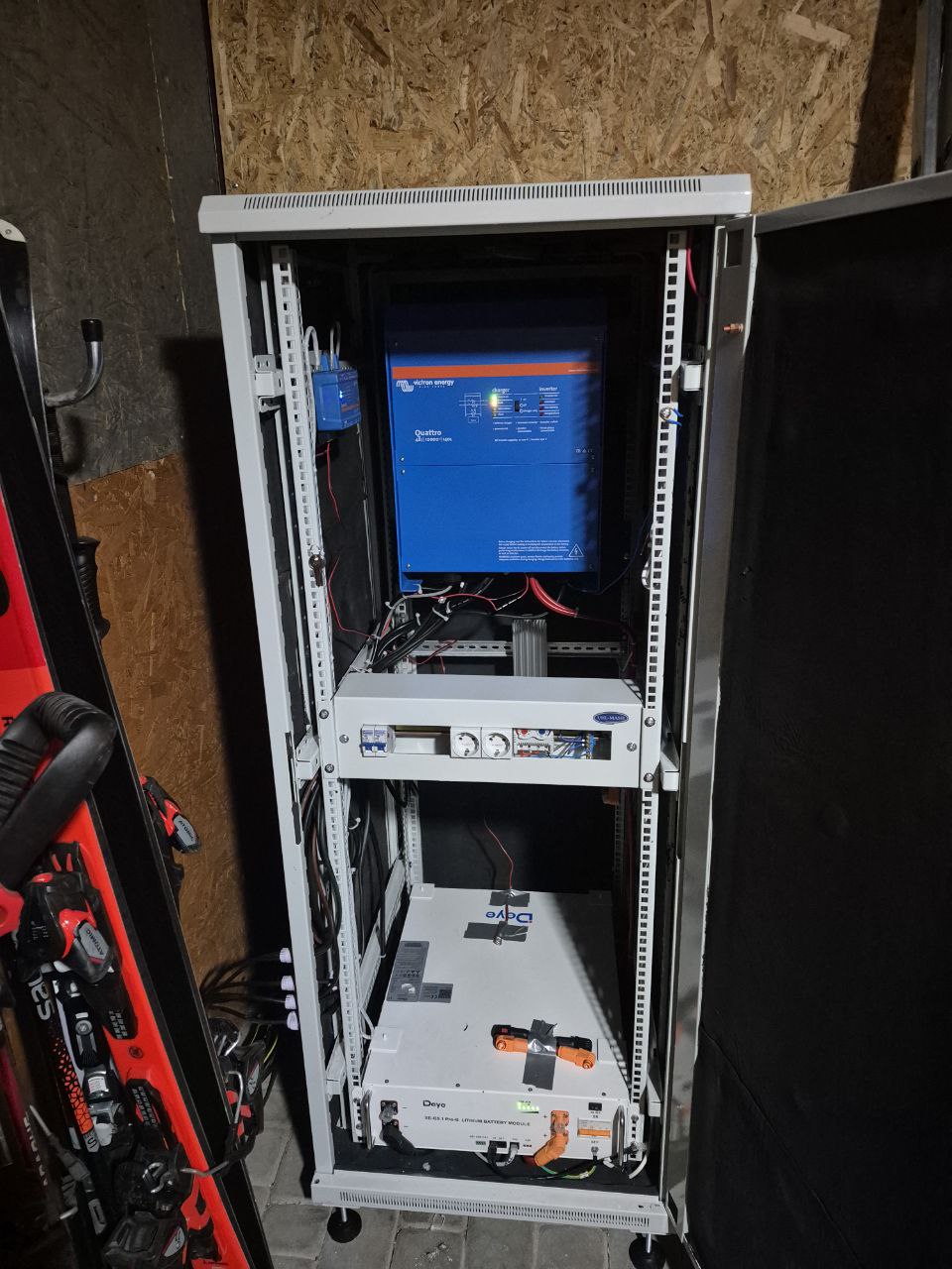 Ми завершили чергове налаштування та конфігурацію інверторної системи на базі Victron Energy, встановленої у приміщенні з обмеженим опаленням. Щоб забезпечити стабільну та безпечну роботу обладнання, систему розмістили у закритій металевій шафі, яка дозволяє підтримувати контрольований температурний режим.