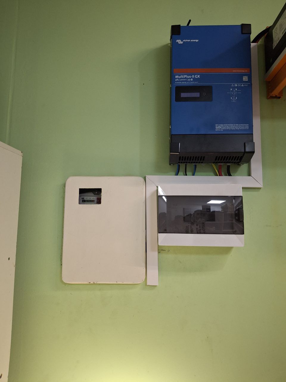Система складається з інвертора Victron MultiPlus-II GX 3 кВт та акумуляторної батареї Pylontech US5000 на 5 кВт. У періоди відключень інвертор автоматично перемикає систему в режим живлення від акумулятора, забезпечуючи роботу необхідної техніки без перерв. Потужності вистачає, щоб підтримувати освітлення, роботу комп'ютерів та базових офісних приладів, дозволяючи продовжувати робочий процес навіть за непередбачуваних обставин.