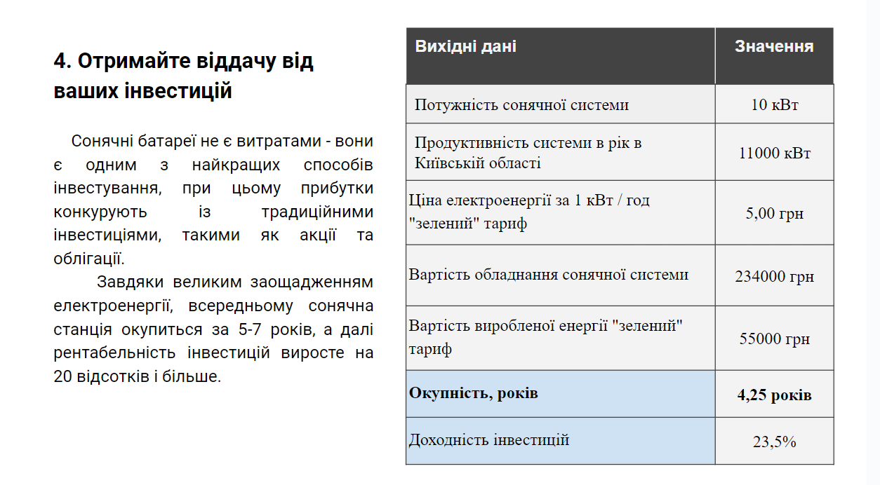 Вартість: від 850дол за 1 кВт