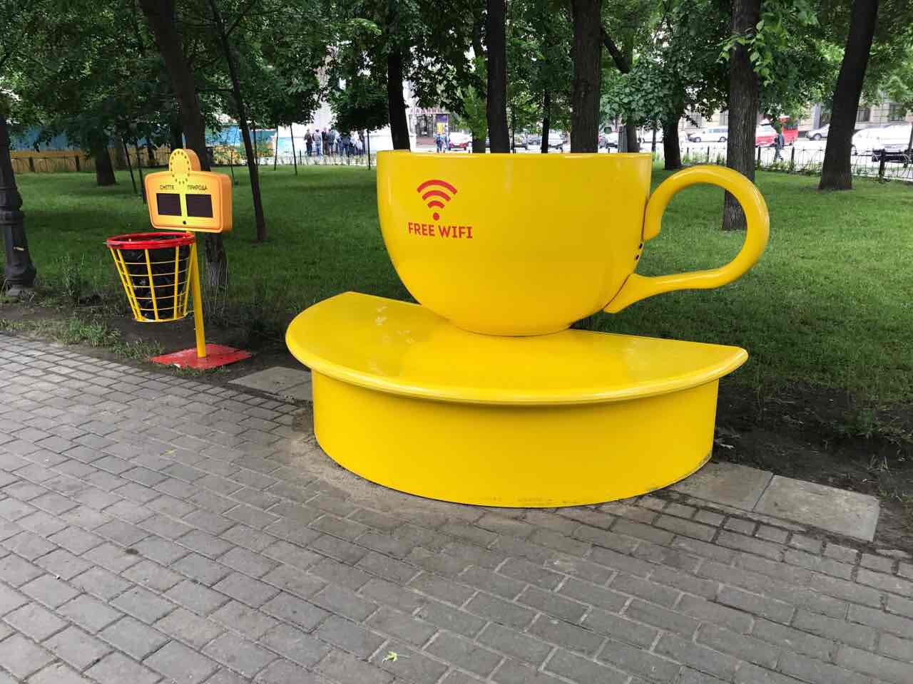«Розумні» лавки на сонячних батареях у вигляді чашок, Київ 2017-06