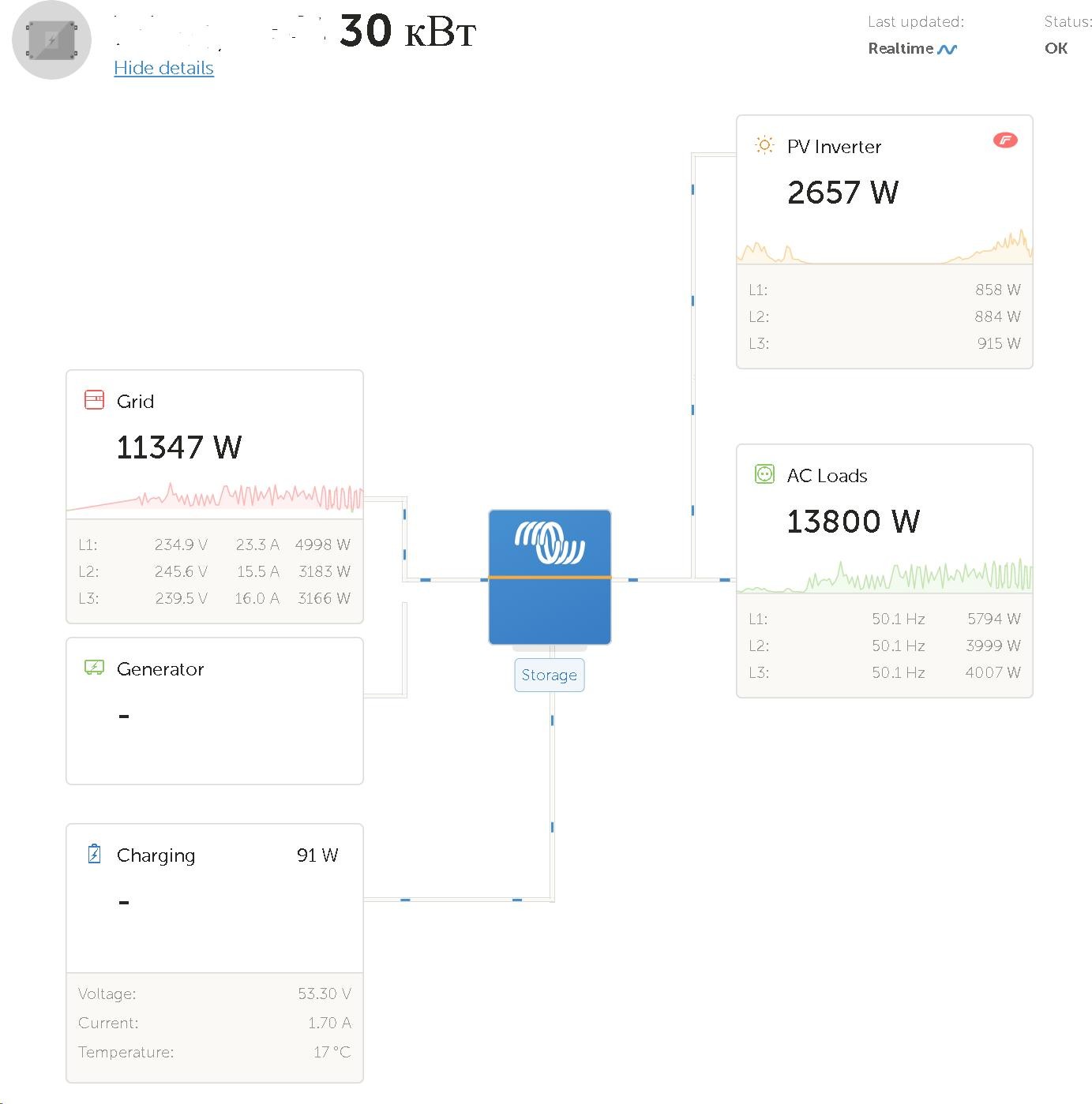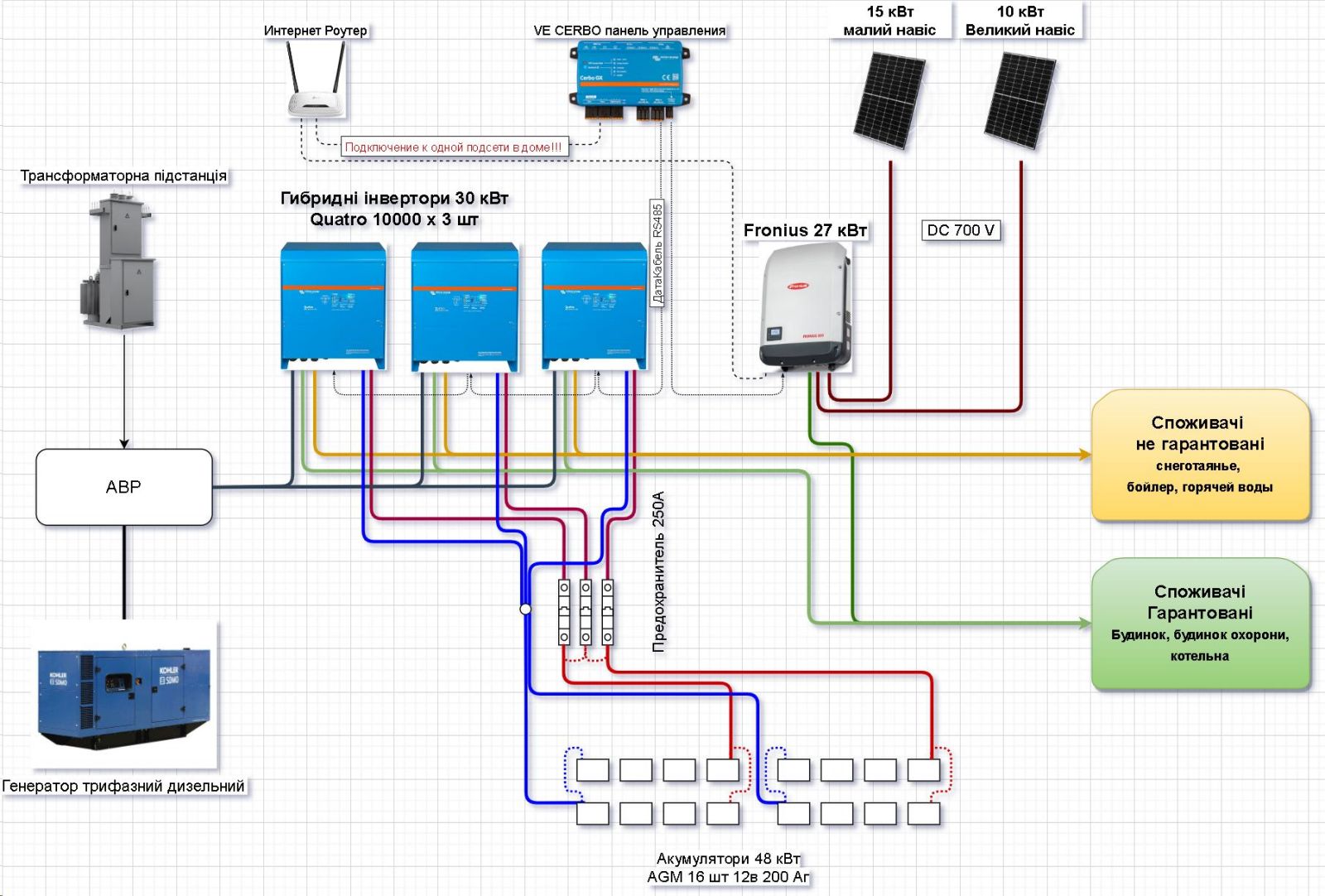 Резервна система живлення 30 кВт на інверторах Victron Energy 10 кВт, Київська область 2022-09