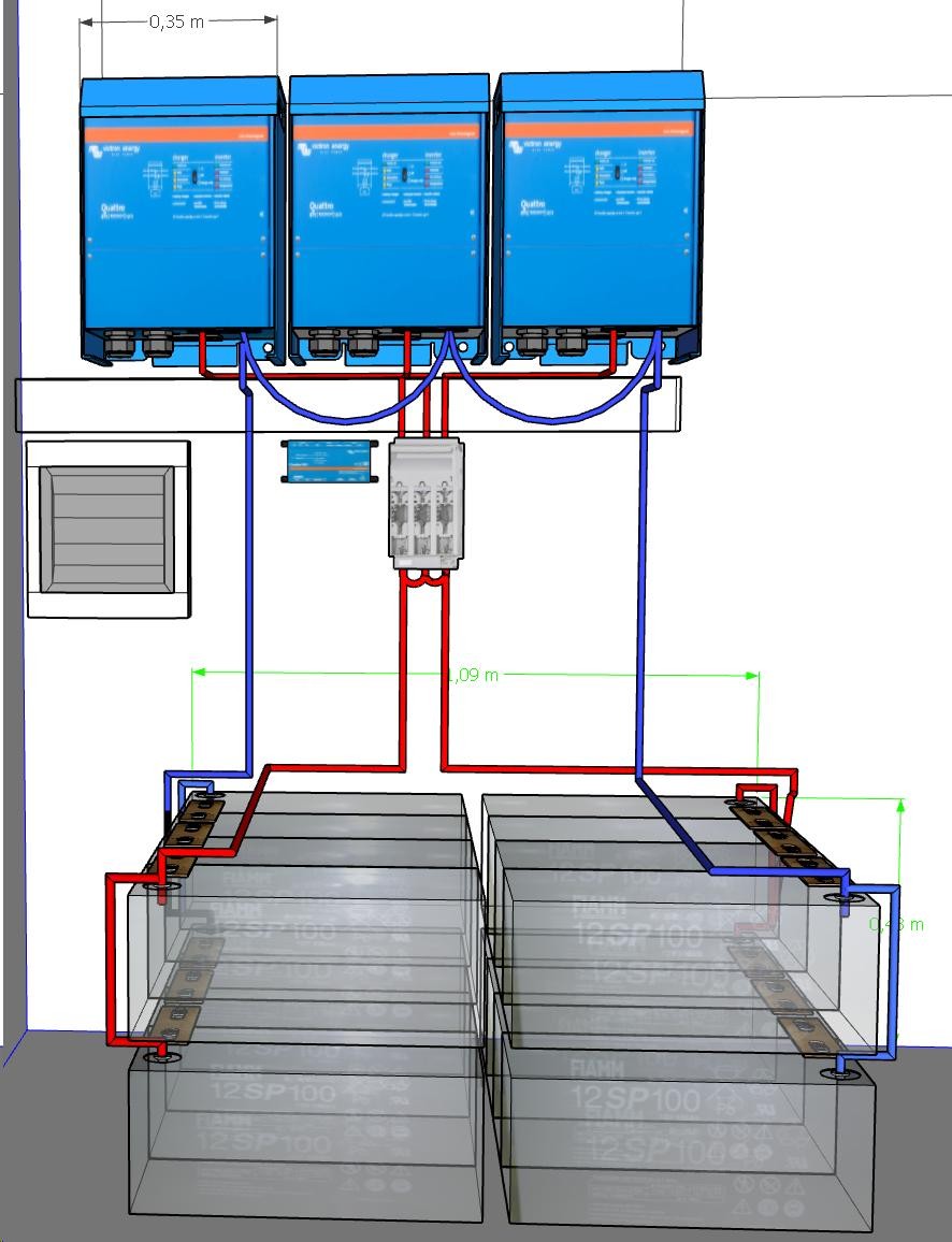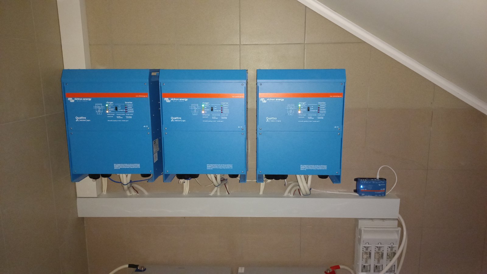 • Гібридні інвертори Victron Energy 10 кВт: 3 шт.