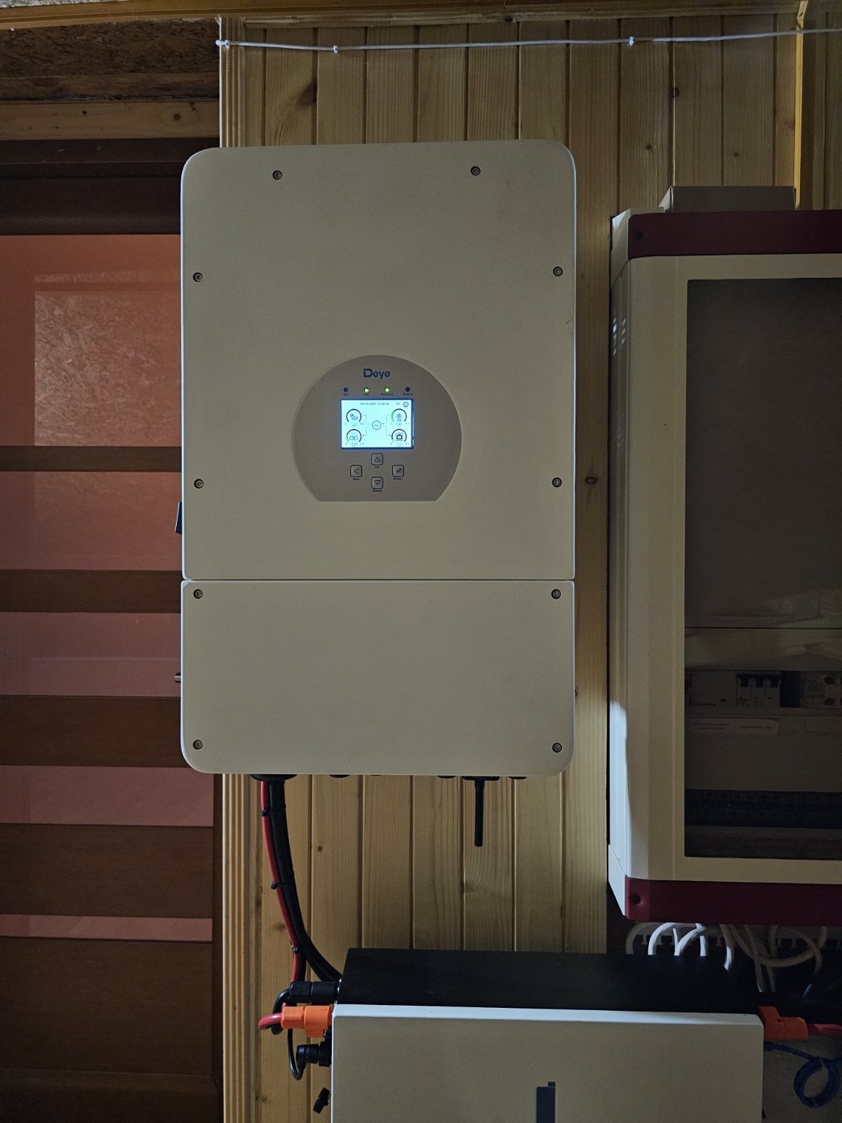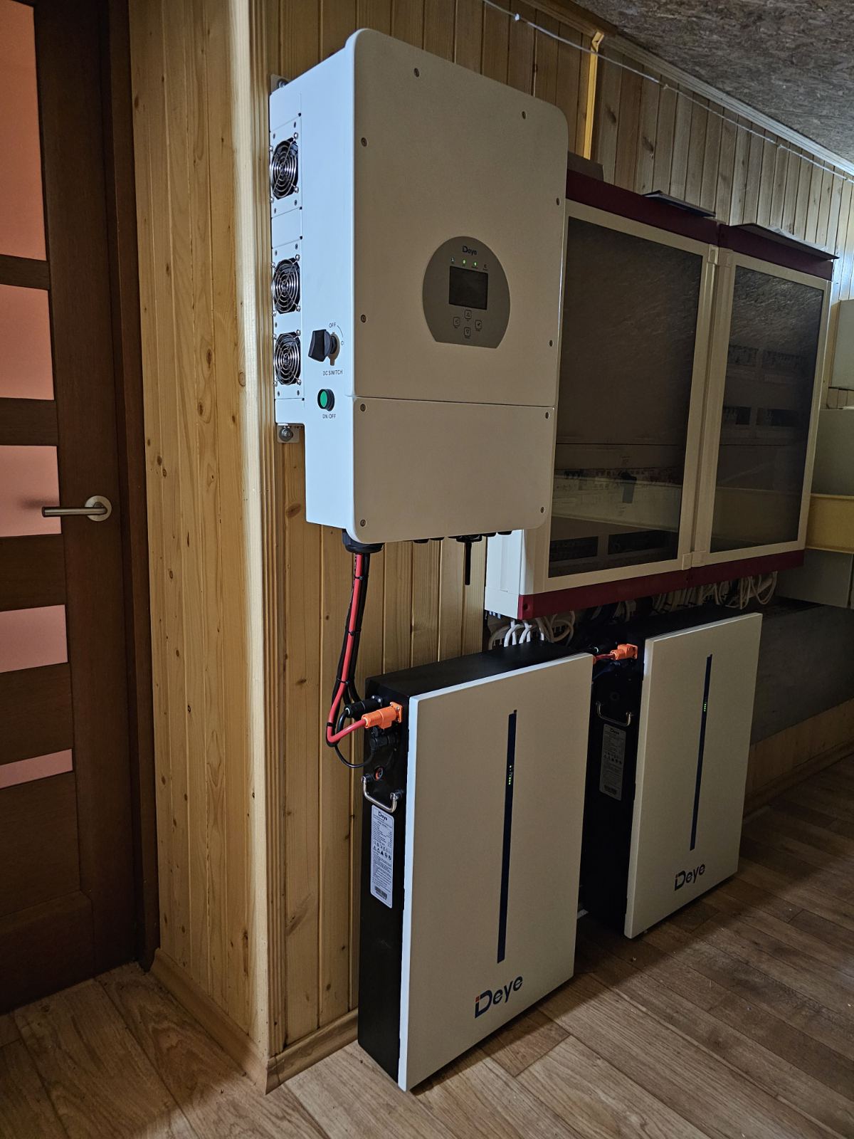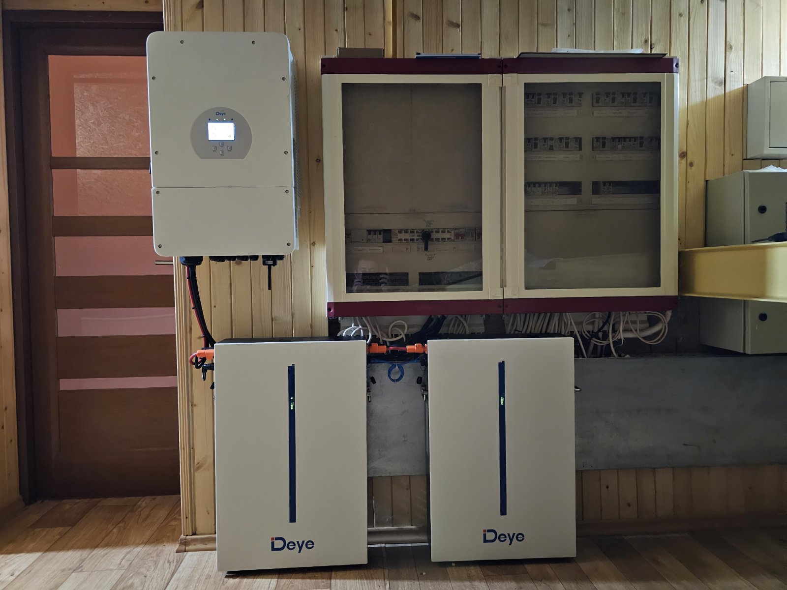 - Акумуляторні батареї DEYE: 2 акумулятори загальною ємністю 10 кВт⋅год, які забезпечують автономне живлення будинку протягом тривалого часу.